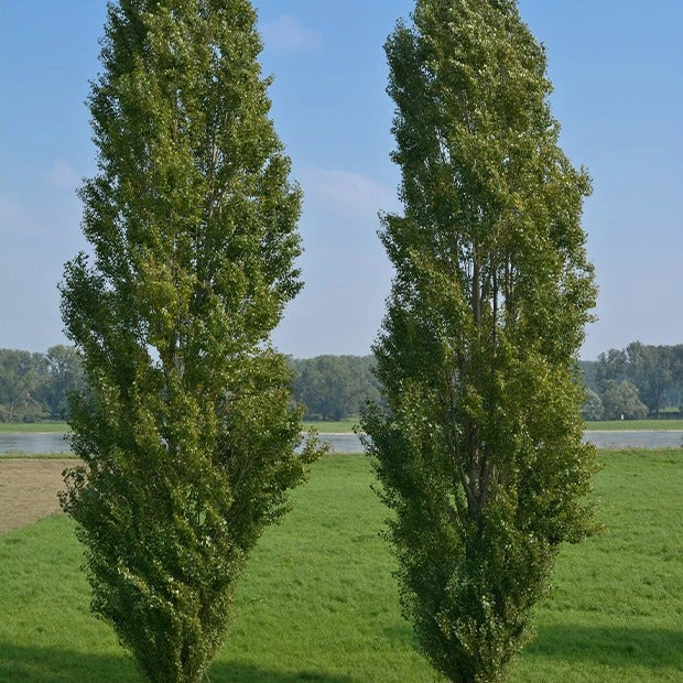 Le peuplier pyramidal Populus nigra ‘Italica’ est un arbre Ă croissance rapide (plus de 80 cm par an) qui est particuliĂšrement adaptĂ© pour la confection de haies. Il possĂšde des branches verticales qui poussent prĂšs du tronc, et des feuilles qui bougent au moindre souffle d’air. Cet arbre est Ă©galement connu sous le nom de peuplier d’Italie, et sâavĂšre ĂȘtre trĂšs prĂ©sent sur le territoire français. Il est souvent utilisĂ© en bordure de routes, de canaux ou des berges de cours d’eau, grĂące Ă sa silhouette Ă©lancĂ©e.