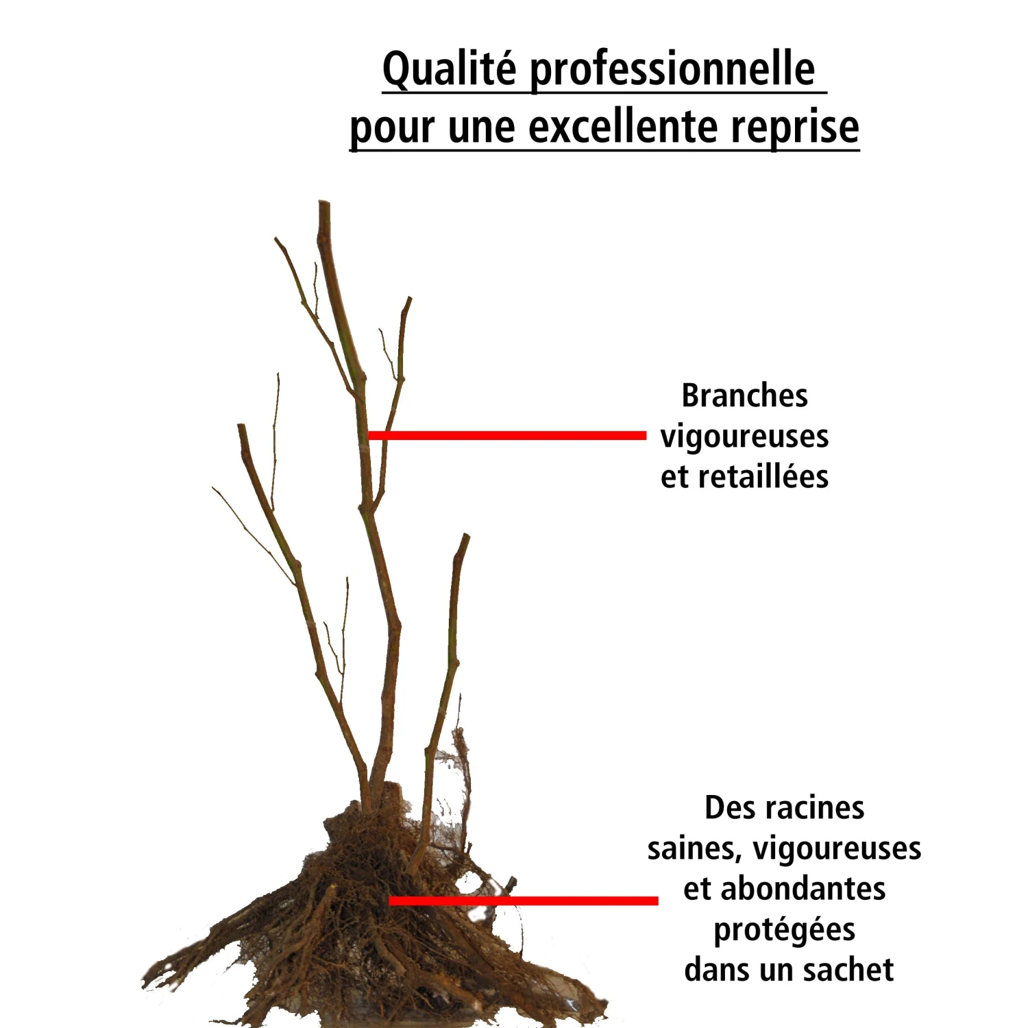 Les Rubus Idaeus Versailles, plus communĂ©ment appelĂ©s Framboisiers remontants Versailles, sont une variĂ©tĂ© remontante de la famille des Rosaceae. Originaires d’Europe et d’Asie tempĂ©rĂ©e, ils sont relativement communs. De plus, leur culture ne prĂ©sente pas de difficultĂ© particuliĂšre, d’autant que les arbustes qu’ils forment n’ont pas d’Ă©pines, ce qui facilite la rĂ©colte. Ce type de framboisiers a le mĂ©rite de produire des fruits rouges de belle taille, d’une dizaine de grammes environ, au goĂ»t prononcĂ©. AprĂšs que leurs bourgeons soient Ă©clos en de petites fleurs blanches, la fructification s’Ă©tale sur la pĂ©riode estivale, de juin Ă mi-octobre, avec une baisse de rendement au milieu de l’Ă©tĂ©. En somme, les framboisiers remontants Versailles apportent de la couleur au jardin, du haut de leur 1,50 m Ă maturitĂ©.