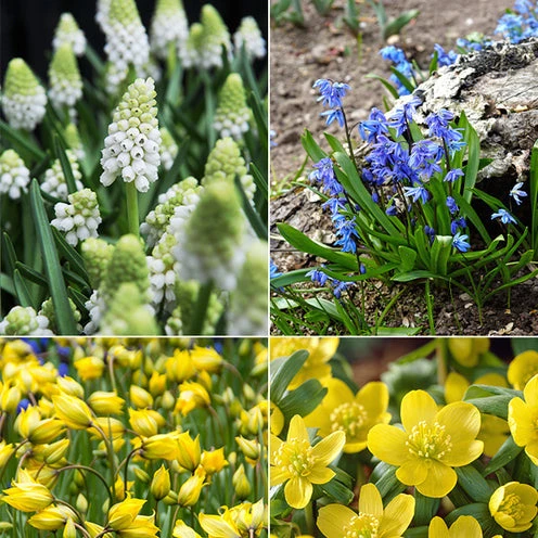 – Scilla Siberica, connue sous le nom de « Scille de Sibérie ». Cette plante présente des grappes de fleurs bleues en forme de cloche au début du printemps. Elle atteint environ 20 cm de hauteur et est particulièrement résistante au gel.