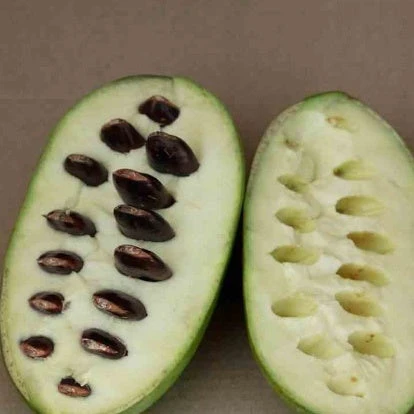 Cet arbre fruitier de la famille des Annonaceae prend ses racines en Amérique du Nord et est principalement présent sur la côte est des Etats-Unis. Jadis, particulièrement apprécié par le président Georges Washington, le fruit à peau verte de l’Asiminier appelé asimine est souvent comparé, voire confondu, avec la papaye. Cette comparaison explique son appellation, « Paw-paw ».