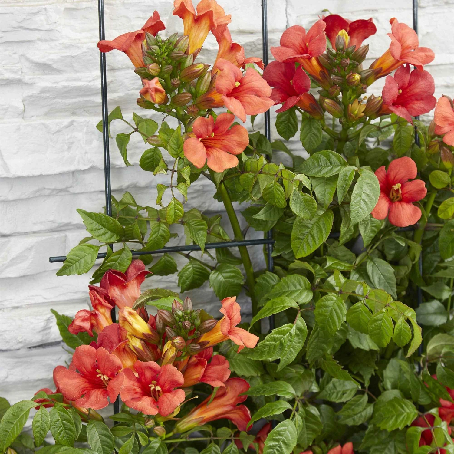 Partez à la découverte de l’élégance de la Bignone Fire Trumpet ! Sa floraison magnifique, composée de teintes flamboyantes, est un atout majeur pour sublimer vos treillages et vos pergolas. Cette variété incontournable peut vous accompagner dans la réalisation d’un magnifique jardin plein de couleurs. Par ailleurs, elle est peu exigeante et ne demande pas beaucoup de soin. Cela la rend très appréciée et convient à tous les niveaux d’expérience du jardinier, qu’il soit expérimenté ou sans expérience. Ajoutez une touche d’exotisme à votre jardin en admirant ses magnifiques fleurs d’un rouge orangé !