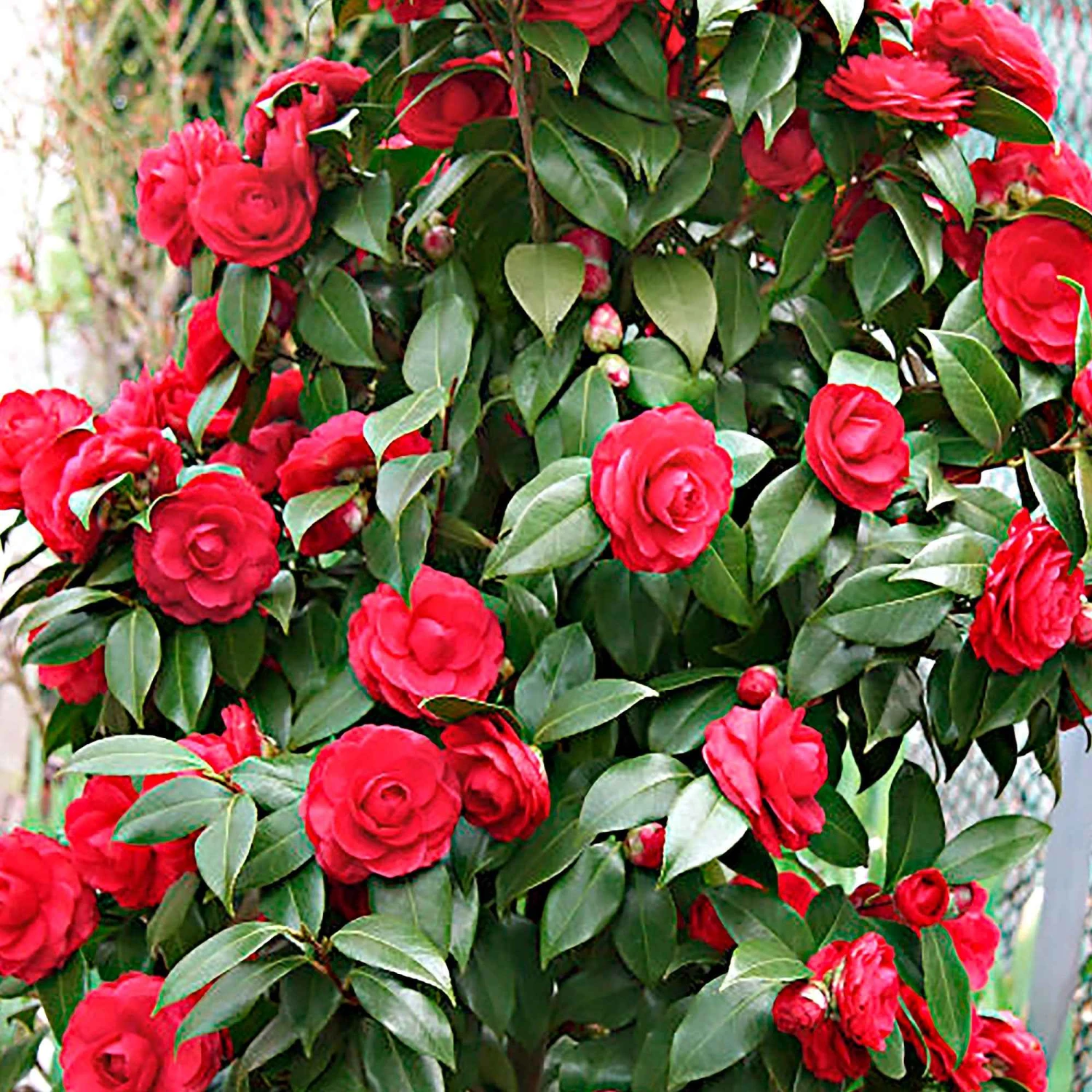 Le Camélia du Japon Black Lace arbore de petites fleurs imbriquées d’un rouge velouté. Cette plante se distingue principalement de sa floraison précoce, au début du septembre, mais elle s’épanouit généralement de décembre à avril. De plus, elle n’est pas en dormance durant la saison hivernale. Elle apporte une touche de couleur et de vie au jardin lorsque tout semble endormi. En plus de ses fleurs exceptionnelles, cet arbuste se distingue par son feuillage arrondi et persistant d’un vert foncé brillant. Les feuilles sont ovales et lustrées, offrant une toile de fond parfaite pour mettre en valeur les fleurs.