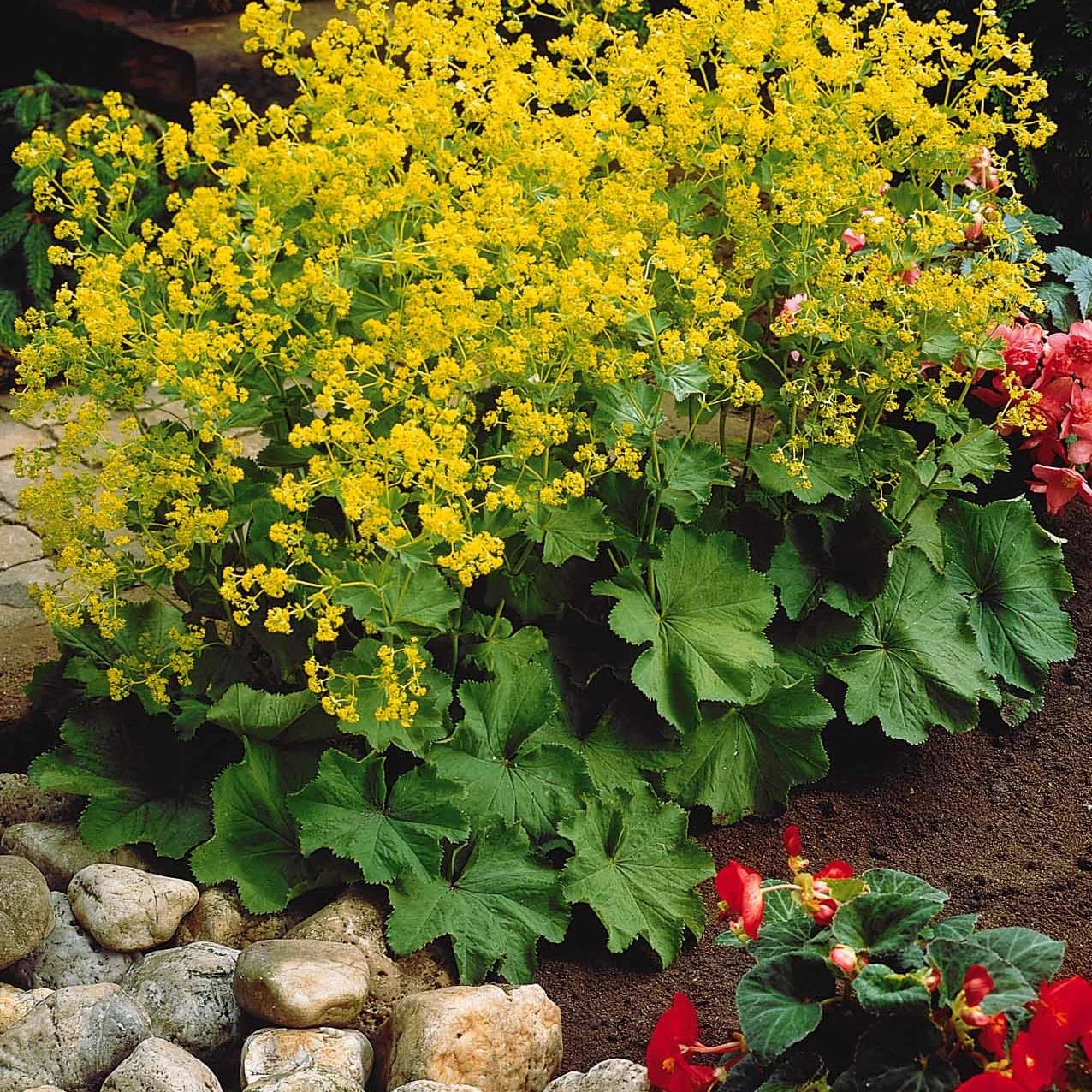L’alchĂ©mille mollis est un plante rustique (qui rĂ©siste au froid), florifĂšre et peu exigeante qui mĂ©rite sa place dans tous les jardins. Avec son feuillage dĂ©coratif et ses multitudes grappes de petites fleurs vaporeuses vert-anis Ă la teinte acidulĂ©e se prolongent de juin Ă septembre, formant de belles touffes arrondies trĂšs aĂ©riennes dans les massifs. D’un jaune vert en Ă©tĂ©, elle forme une touffe dense idĂ©ale en massif, en bordure, au pied des arbres, et donnera de la lĂ©gĂšretĂ© Ă vos bouquets. Le feuillage Ă la particularitĂ© de retenir les goutte de rosĂ©e sur un trĂšs lĂ©ger duvet, ce qui les rend encore plus irrĂ©sistibles⊠Elle supporte tout type de sol, mĂȘme calcaire, le soleil comme la mi-ombre, et ne nĂ©cessite que peu d’entretien. Compacte, elle peut aussi ĂȘtre utilisĂ©e en pot ou bac sur le balcon. Sa hauteur adulte est de 40 Ă 50 cm.