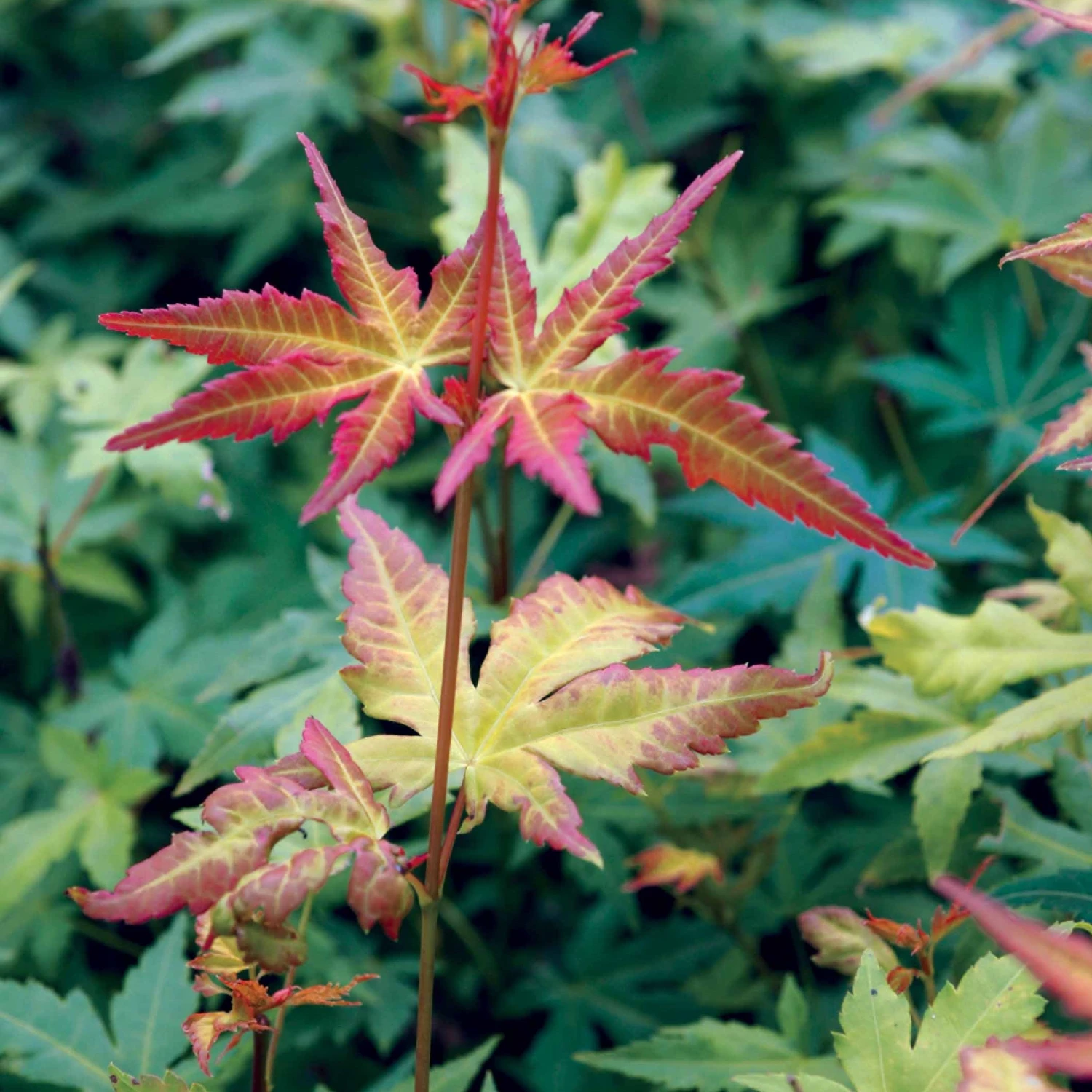 Par ailleurs, on peut distinguer la variété Sango-kaku, aussi appelée comme « érable à écorce de corail », à la fois par son feuillage et ses branches qui prennent une teinte rose vif, apportant ainsi une touche de fantaisie hivernale.