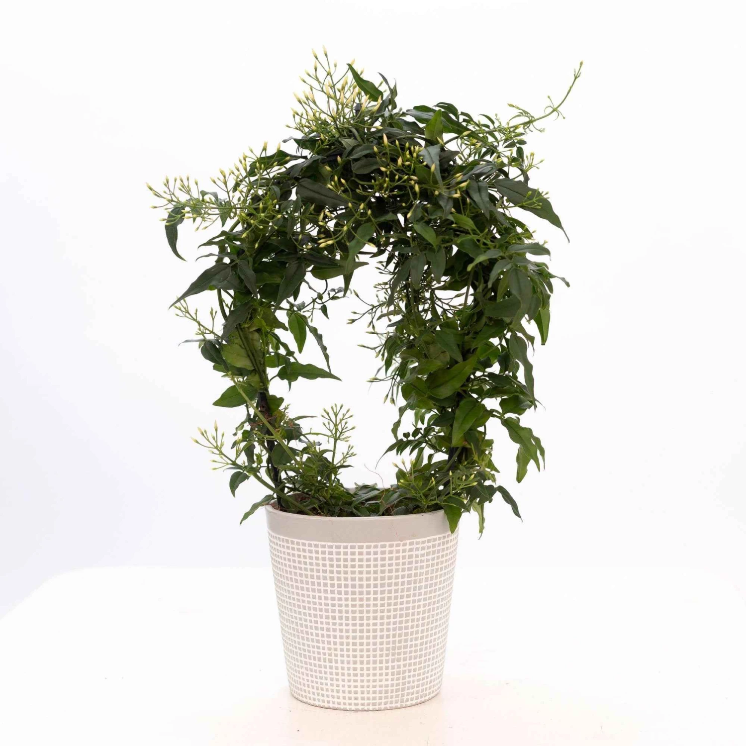 Le Jasminum Polyanthum présente une douce fragrance. Elle enrichit une composition florale pour un espace serein. Aussi connu sous le nom de jasmin blanc d’hiver, il provient des régions florissantes de la Chine antique, avec de belles nuances rosées.