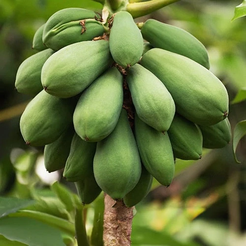 Voici un beau papayer au fruit comestible, il pousse en donnant un beau tronc et des feuilles trĂšs dĂ©coupĂ©es Ă l’allure tropicale et se cultive facilement . Il fleurit en donnant une belle fleur jaune qui donnera chaque annĂ©e plusieurs dĂ©licieux fruits de papaye de 25/30cm de long, jaune vif. Sa douce chair jaune est un savant mĂ©lange de saveur de papaye et d’ananas avec quelques pointes de kiwi et de fraise. il peut ĂȘtre dĂ©gustĂ© cru et bien sur en plat cuisinĂ©. Il est autofertile.